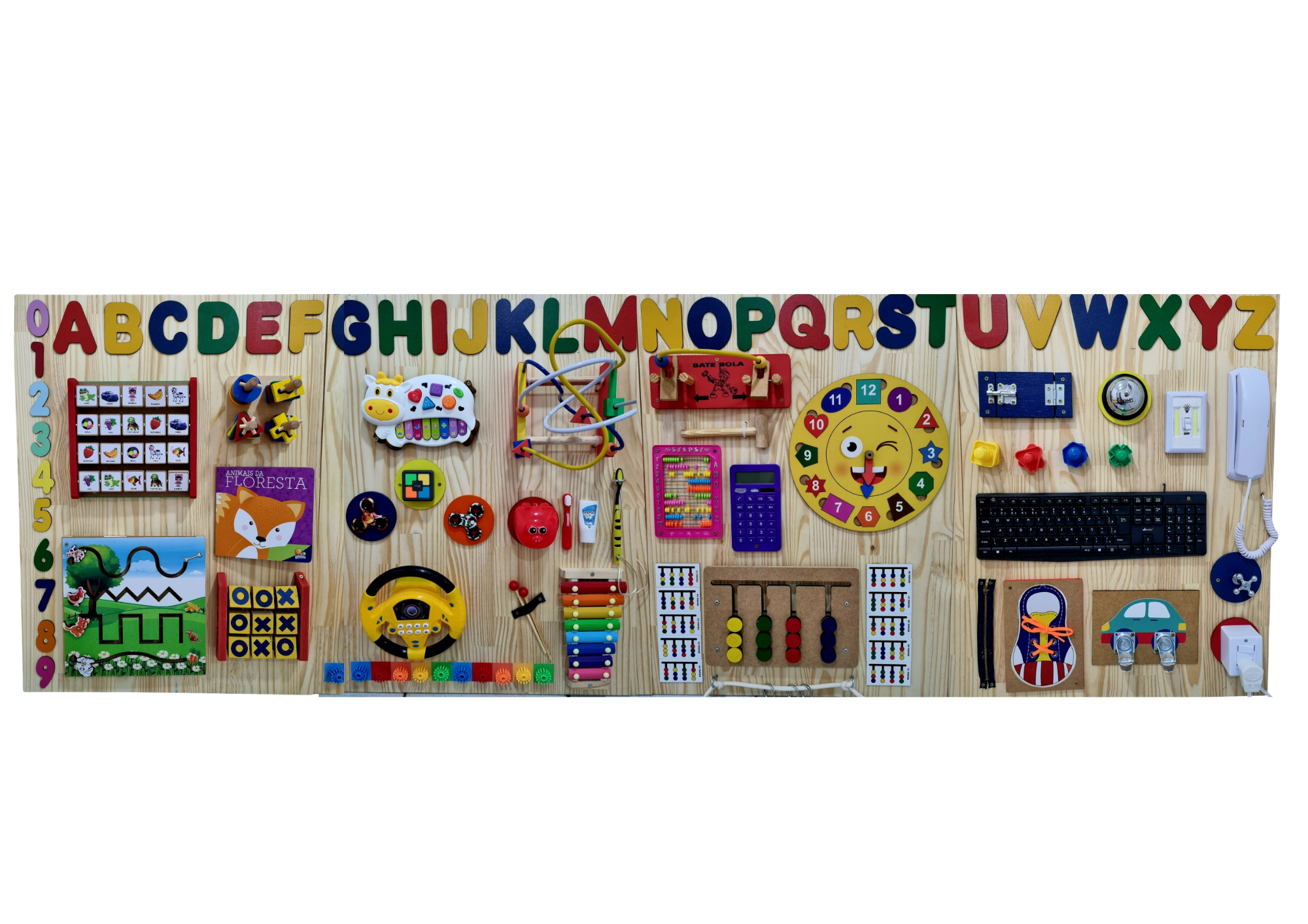 PAINEL DE ATIVIDADES SENSORIAIS MONTESSORI GIGANTE 2,40x80